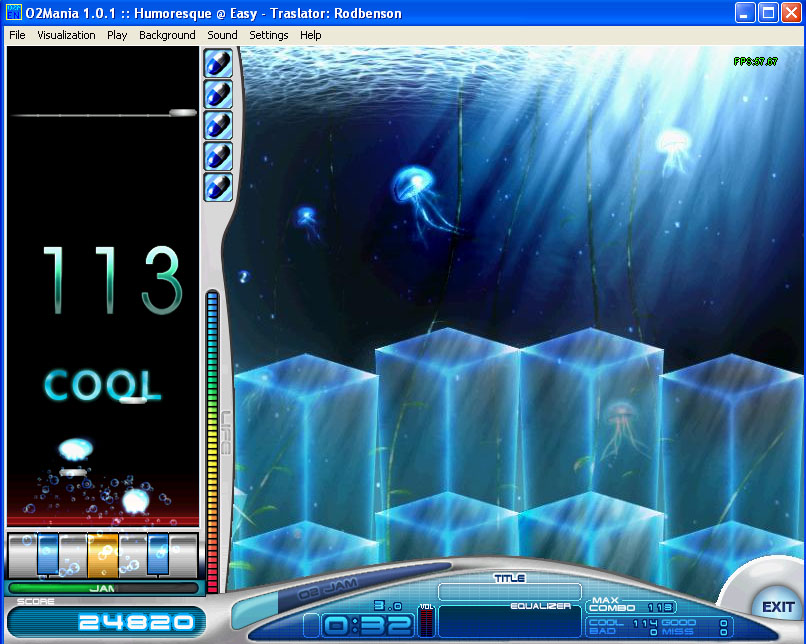 untuk cara mainin game ini km tgl klik menu file-open(atau bisa lgsung F8)-pilih lagu-OK-Play(dimenu)-Start(atau bisa lgsung F6).
